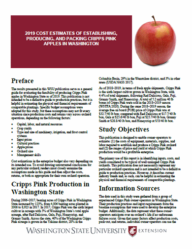 2019 Cost Estimates of Establishing, Producing, and Packing Cripps Pink Apples in Washington