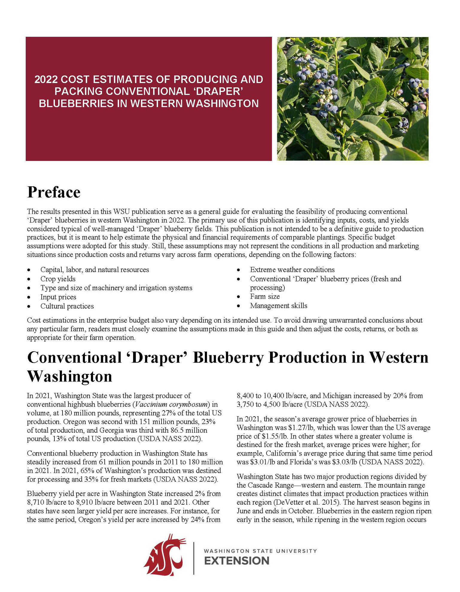 Find out if producing ‘Draper’ blueberries under conventional management is doable within your operation by using the cost estimates and analyses presented here.