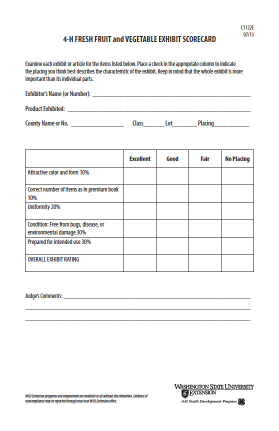 4-H Fresh Fruit and Vegetable Exhibit Scorecard