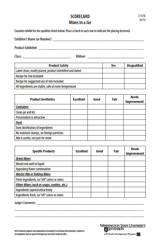 4-H Mixes in a Jar Scorecard