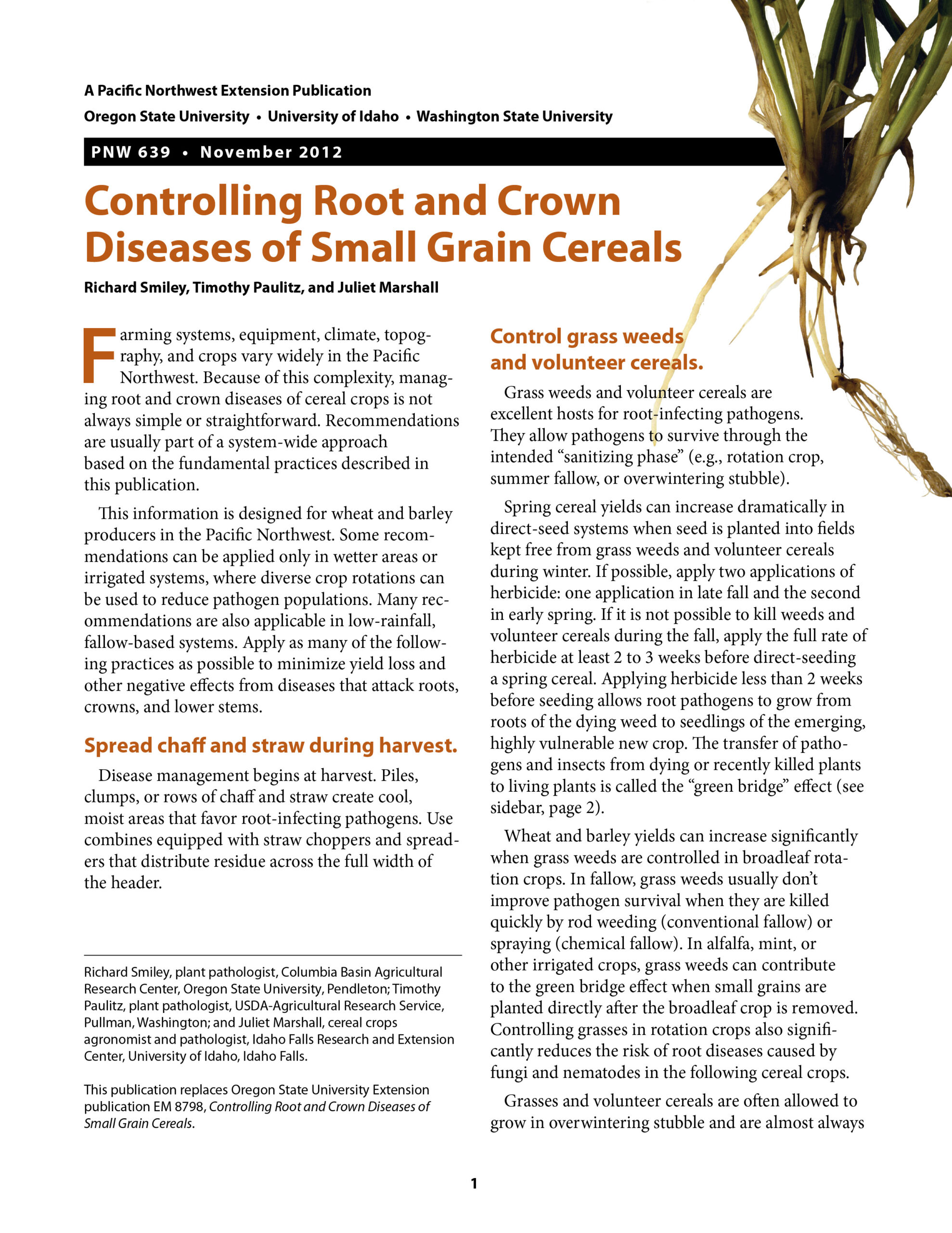Controlling Root and Crown Diseases of Small Grain Cereals