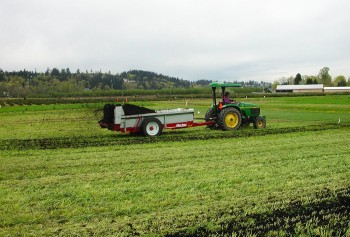 If you raise livestock, or if you have neighbors who do, you will likely have plenty of manure available nearby. If you have to import manure from more distant sources, transportation can greatly increase costs. You will need to decide if it makes economic sense if you are considering importing manure. Other organic materials may also be locally available, such as peppermint hay in parts of the Willamette Valley and the Columbia Basin, or shrimp and crab waste if processing facilities are nearby.