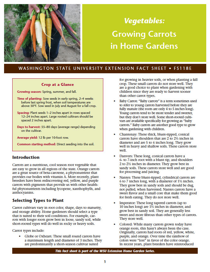 It’s not difficult to grow carrots in Washington gardens, but gardeners need to know the basics of carrot growing for success. This publication provides information to Washington gardeners on the basi …