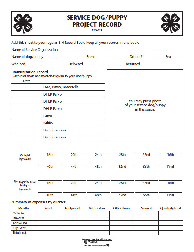 A record for the 4-Her’s service dog/puppy project. …