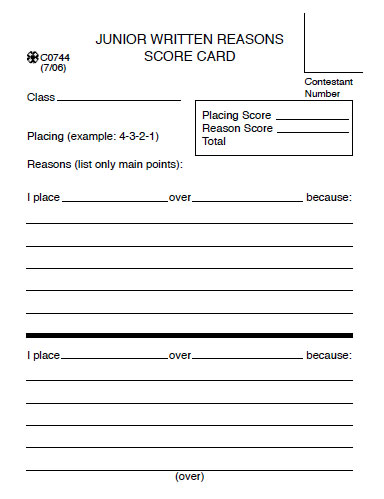 Junior Written Reasons Score Card (pad of 50)