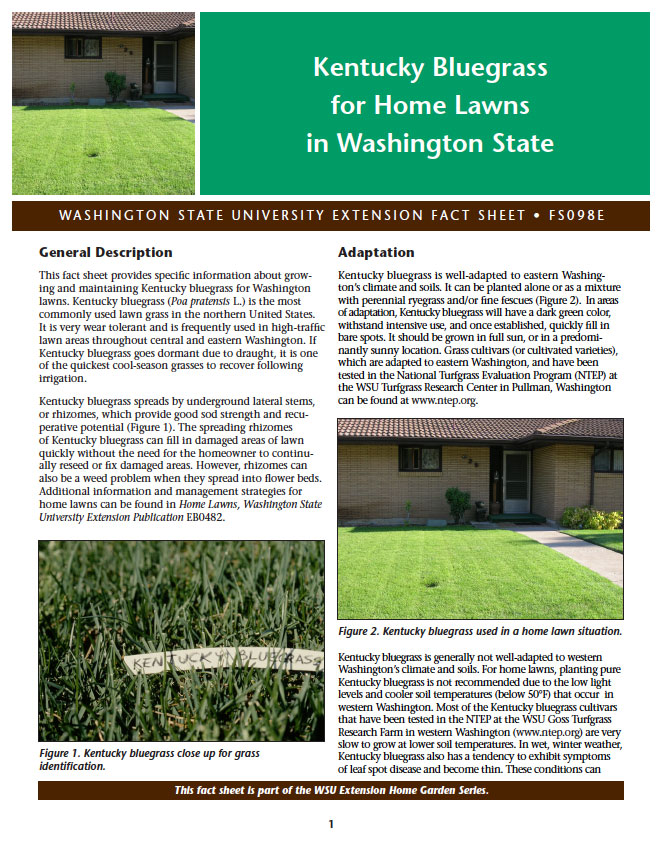 Kentucky Bluegrass for Use in Home Lawns in Washington (Home Garden Series)