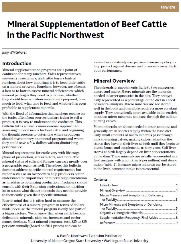 Mineral Supplementation of Beef Cattle in the Pacific Northwest