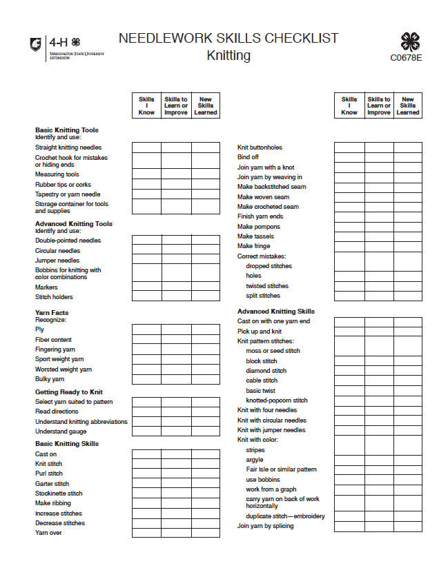 Needlework Skills Checklist