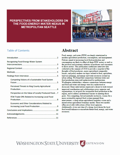 Food, energy, and water: we use them and need them. This publication provides a snapshot of perspectives from stakeholders across the Pacific Northwest.