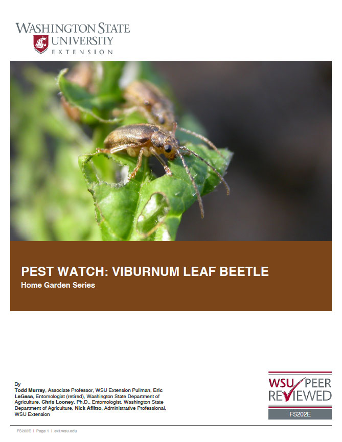 Viburnum leaf beetle (Pyrrhalta viburni) is an invasive pest from Europe that is spreading in Washington State. It can cause branch dieback and even death of Viburnum species, including native species …