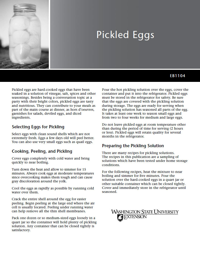 Besides being a conversation topic at a party with their bright colors, pickled eggs are tasty and nutritious. This publication tells you how to select eggs for pickling; how to cook, peel, and pickle …