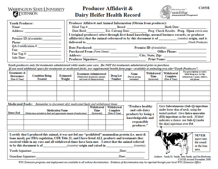 Producer Affidavit & Market Heifer Health Record