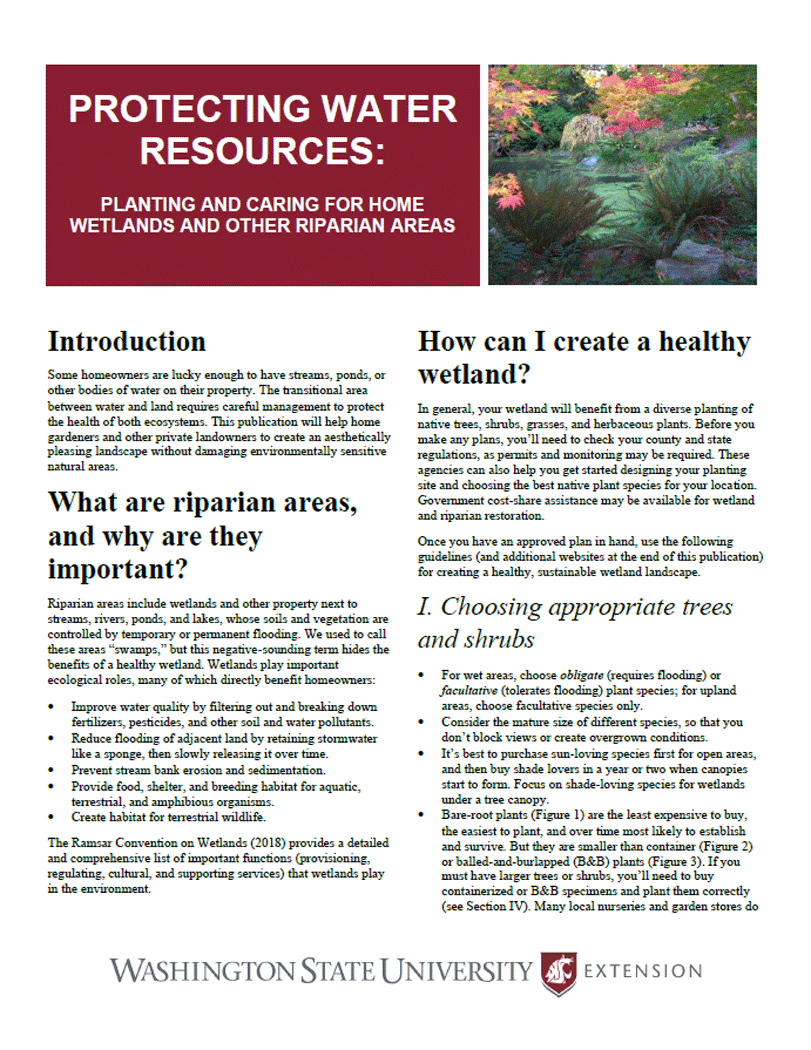 Protecting Water Resources: Planting and Caring for Home Wetlands and Other Riparian Areas (Home Garden Series)