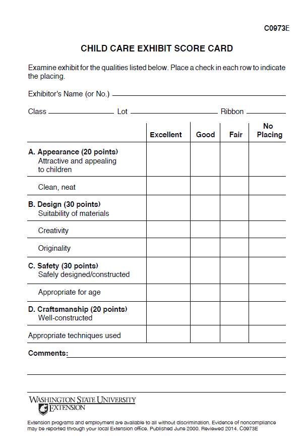 Score Card for Evaluation of Child Care Exhibits
