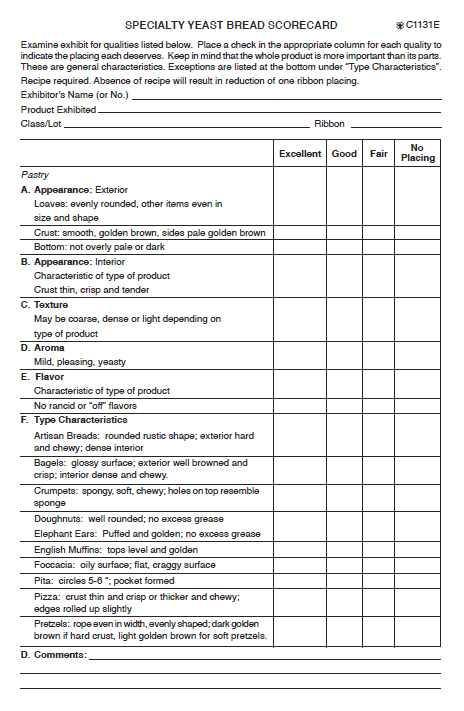 Specialty Yeast Bread Scorecard