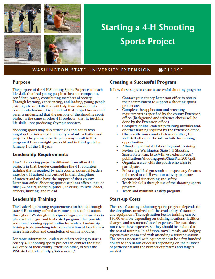 The purpose of the 4-H Shooting Sports Project is to teach life skills that lead young people to become competent, confident, caring, contributing members of society. Through learning, experiencing, …