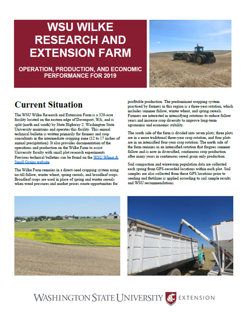 This annual publication outlines the operations, production, and economic performance of the WSU Wilke Farm for the year 2019.
