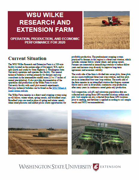 This annual publication outlines the operations, production, and economic performance of the WSU Wilke Farm for 2020.